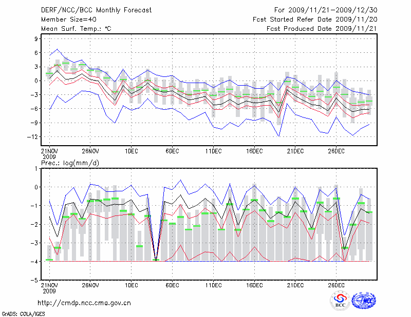 延 安 (LAT:36.60 LON:109.50) 2009-11-21        预测
