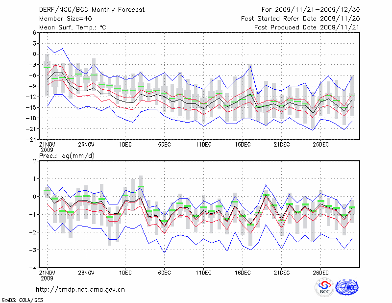 牡 丹 江 (LAT:44.57 LON:129.60) 2009-11-21        预测