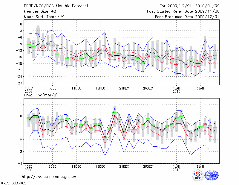 牡 丹 江 (LAT:44.57 LON:129.60) 2009-12-01        预测
