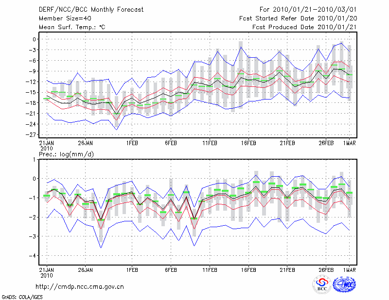 牡 丹 江 (LAT:44.57 LON:129.60) 2010-01-21        预测