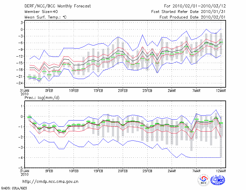 哈 尔 滨 (LAT:45.75 LON:126.77) 2010-02-01        预测