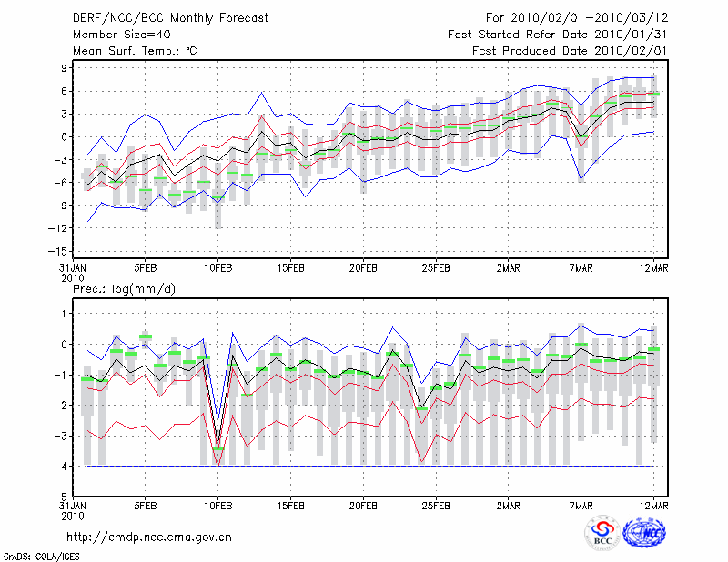 延 安 (LAT:36.60 LON:109.50) 2010-02-01        预测