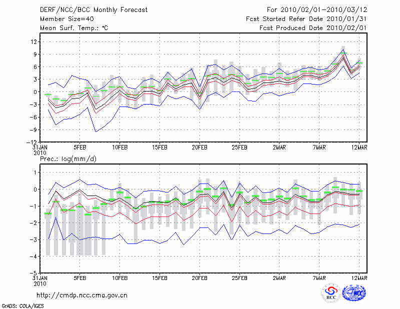 甘 孜 (LAT:31.62 LON:100.00) 2010-02-01        预测