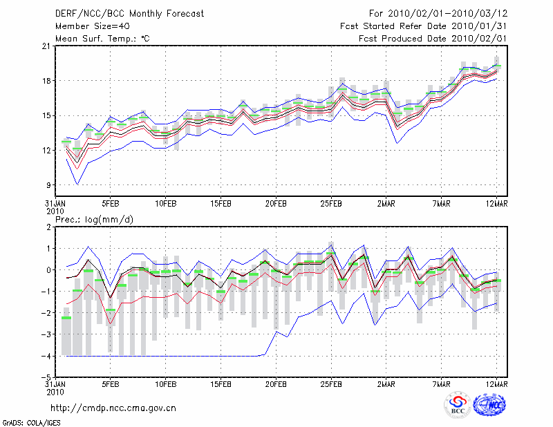临 沧 (LAT:23.95 LON:100.22) 2010-02-01        预测