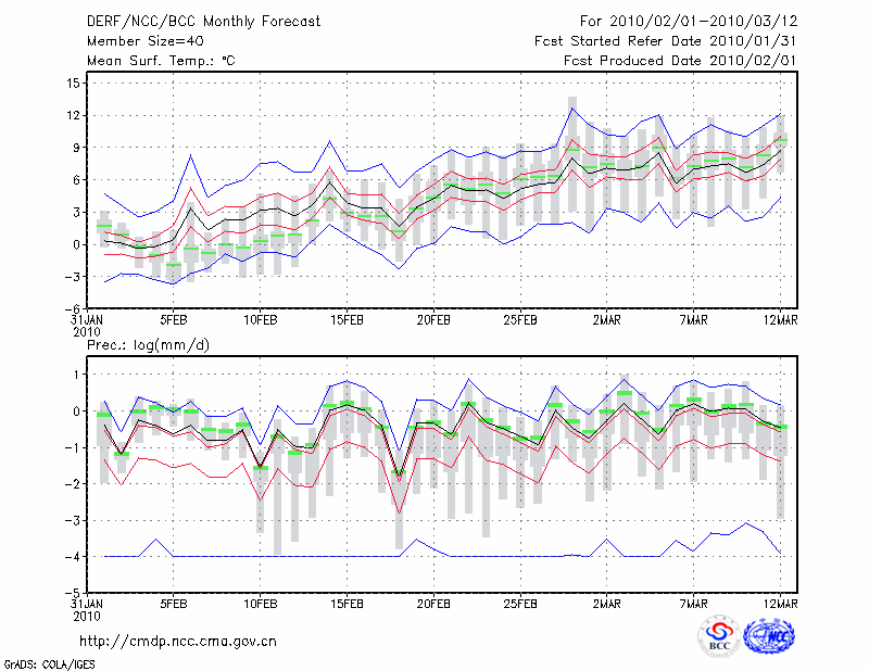 西 安 (LAT:34.30 LON:108.93) 2010-02-01        预测