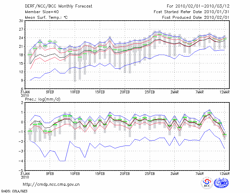 百 色 (LAT:23.90 LON:106.60) 2010-02-01        预测