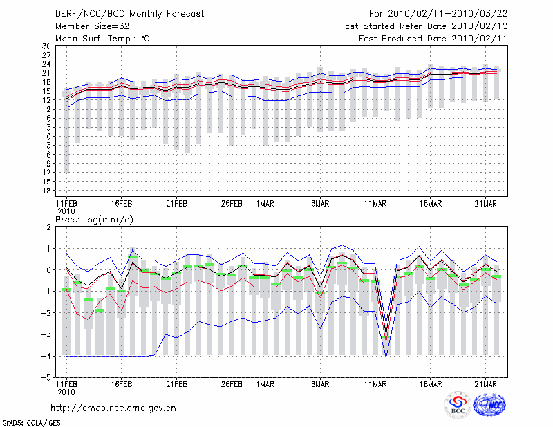 蒙 自 (LAT:23.38 LON:103.38) 2010-02-11        预测