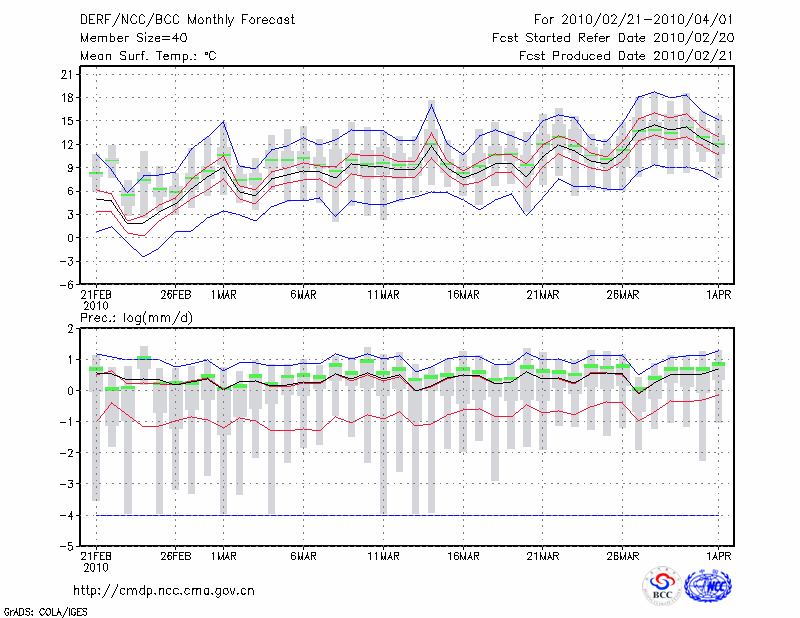 南 京 (LAT:32.00 LON:118.80) 2010-02-21        预测
