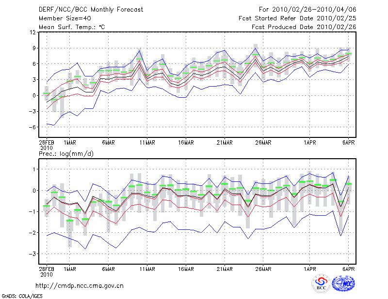 甘 孜 (LAT:31.62 LON:100.00) 2010-02-26        预测