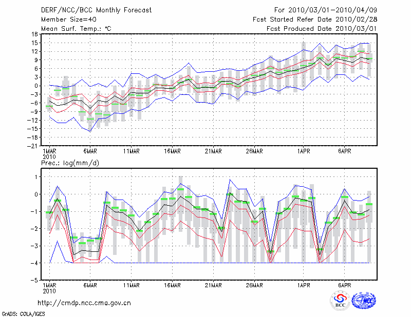 赤 峰 (LAT:42.27 LON:118.97) 2010-03-01        预测