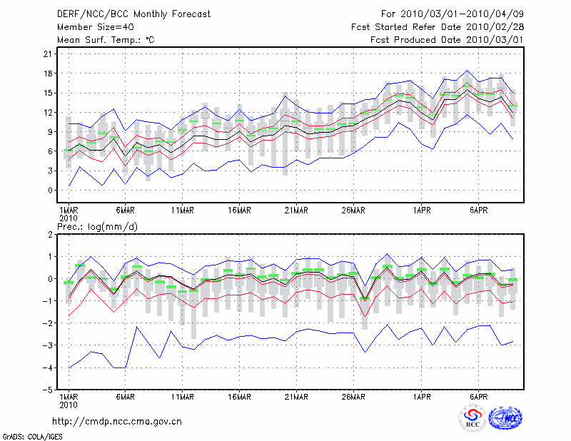 西 安 (LAT:34.30 LON:108.93) 2010-03-01        预测