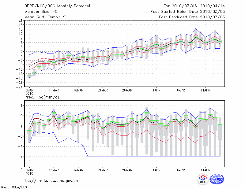 哈 尔 滨 (LAT:45.75 LON:126.77) 2010-03-06        预测