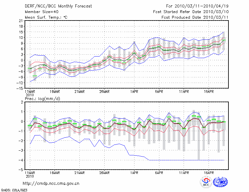 牡 丹 江 (LAT:44.57 LON:129.60) 2010-03-11        预测