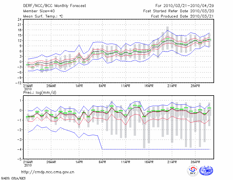 牡 丹 江 (LAT:44.57 LON:129.60) 2010-03-21        预测