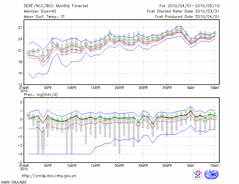 蒙 自 (LAT:23.38 LON:103.38) 2010-04-01        预测