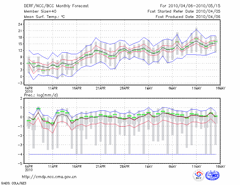 牡 丹 江 (LAT:44.57 LON:129.60) 2010-04-06        预测