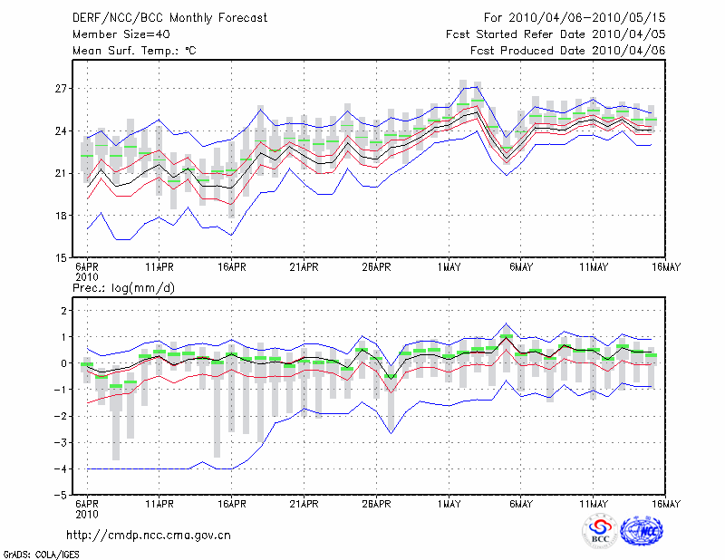 蒙 自 (LAT:23.38 LON:103.38) 2010-04-06        预测