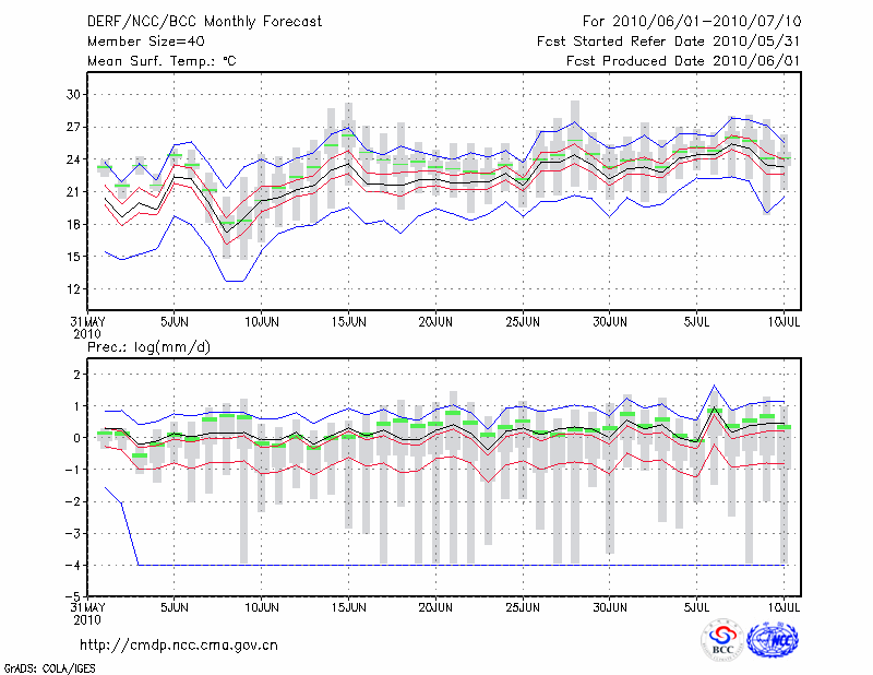 哈 尔 滨 (LAT:45.75 LON:126.77) 2010-06-01        预测
