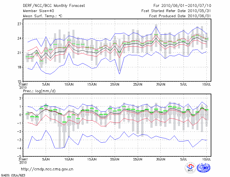 延 安 (LAT:36.60 LON:109.50) 2010-06-01        预测