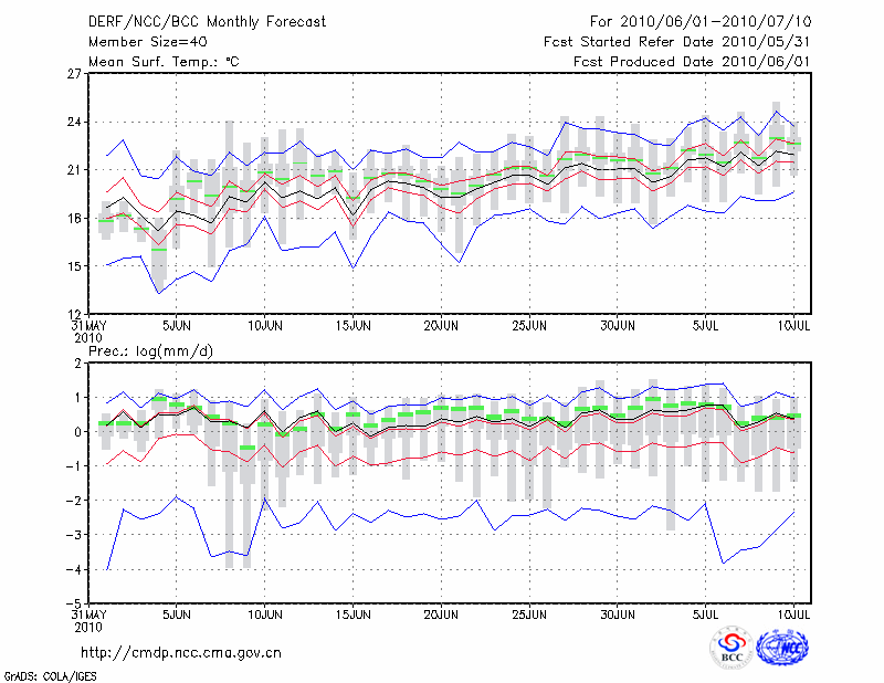 西 峰 镇 (LAT:35.73 LON:107.63) 2010-06-01        预测