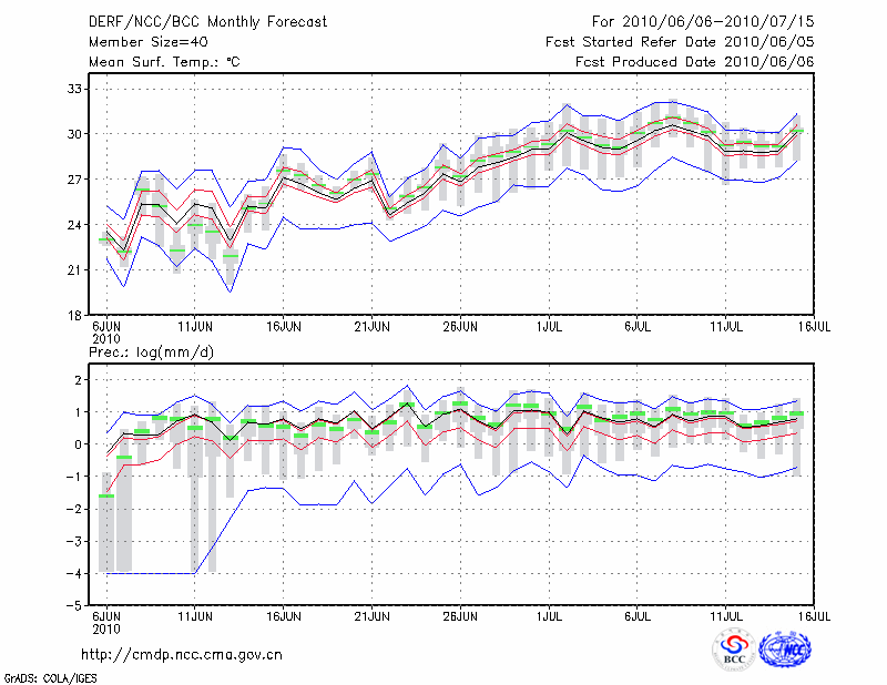东 台 (LAT:32.87 LON:120.32) 2010-06-06        预测