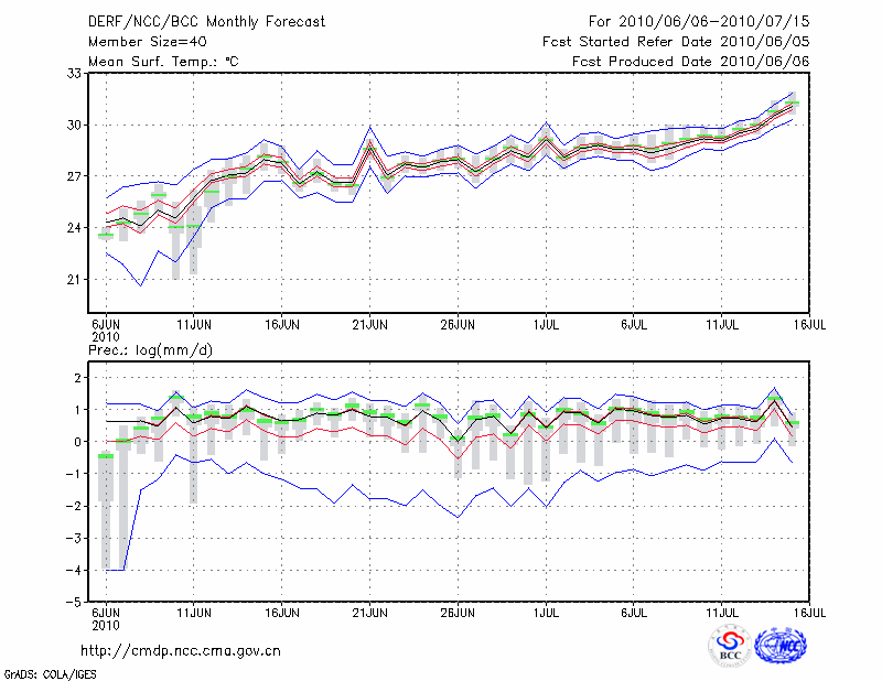 温 州 (LAT:28.02 LON:120.67) 2010-06-06        预测