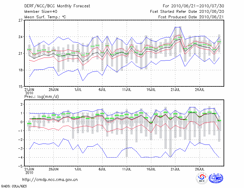 西 峰 镇 (LAT:35.73 LON:107.63) 2010-06-21        预测