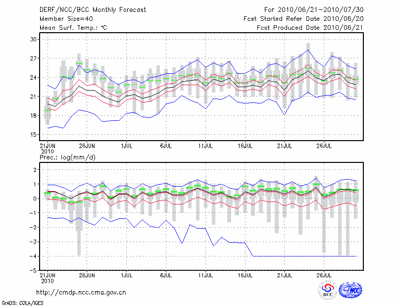牡 丹 江 (LAT:44.57 LON:129.60) 2010-06-21        预测