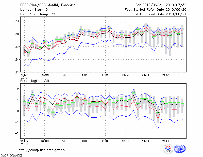 钟 祥 (LAT:31.17 LON:112.57) 2010-06-21        预测