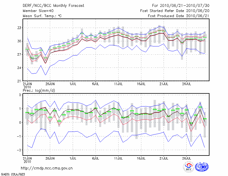 合 肥 (LAT:31.87 LON:117.23) 2010-06-21        预测