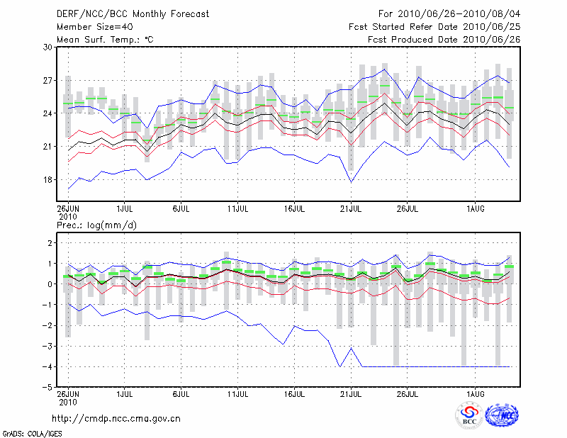 牡 丹 江 (LAT:44.57 LON:129.60) 2010-06-26        预测