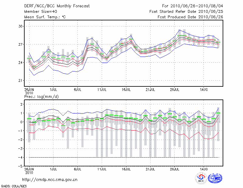 青 岛 (LAT:36.07 LON:120.33) 2010-06-26        预测