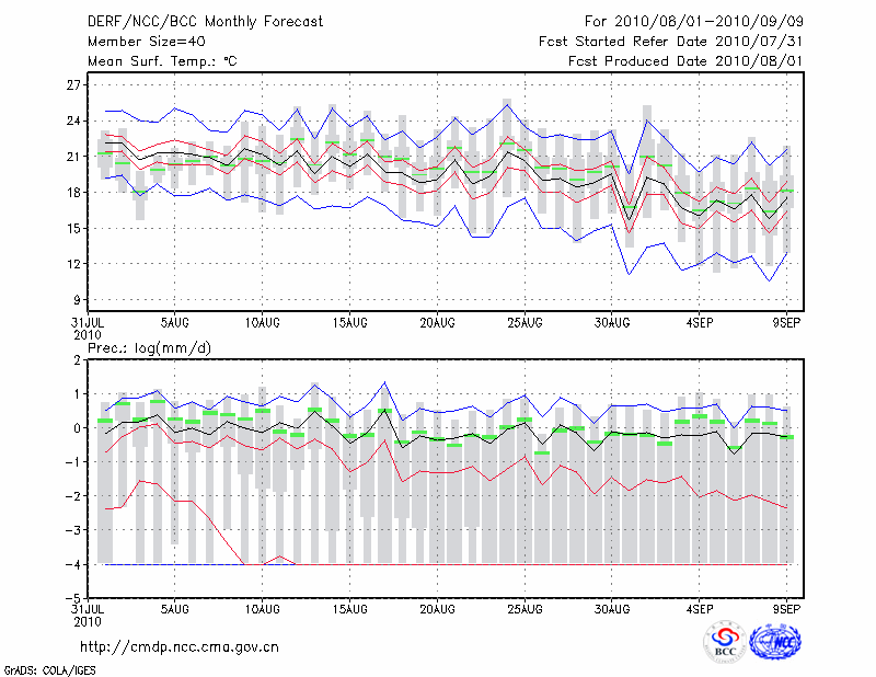 锡林浩特 (LAT:43.95 LON:116.07) 2010-08-01        预测