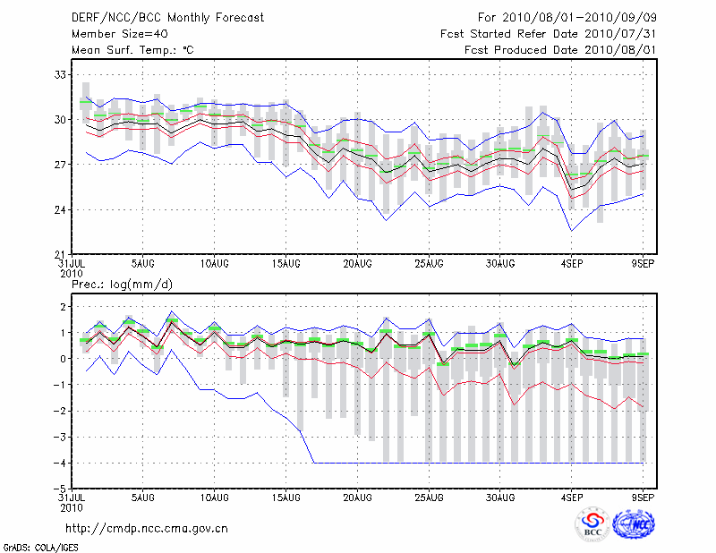 南 京 (LAT:32.00 LON:118.80) 2010-08-01        预测