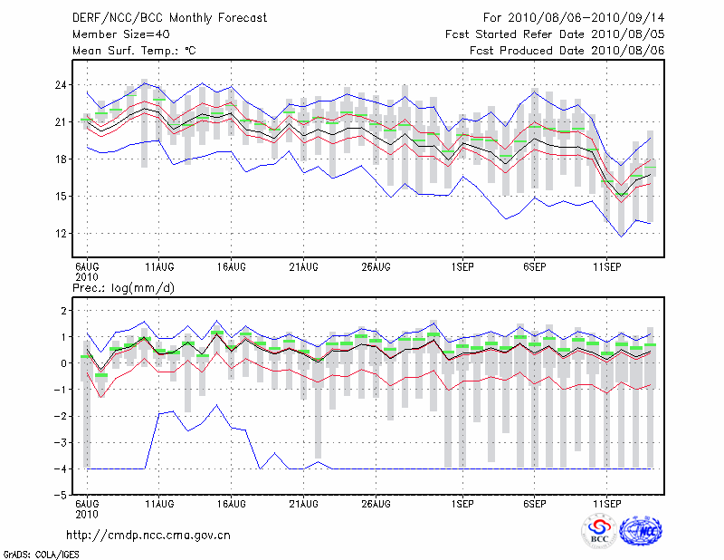 西 峰 镇 (LAT:35.73 LON:107.63) 2010-08-06        预测