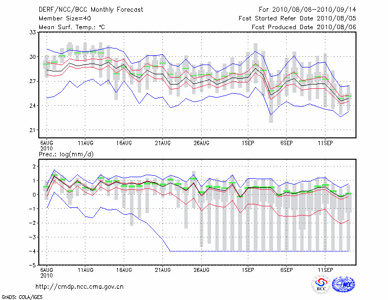 南 京 (LAT:32.00 LON:118.80) 2010-08-06        预测