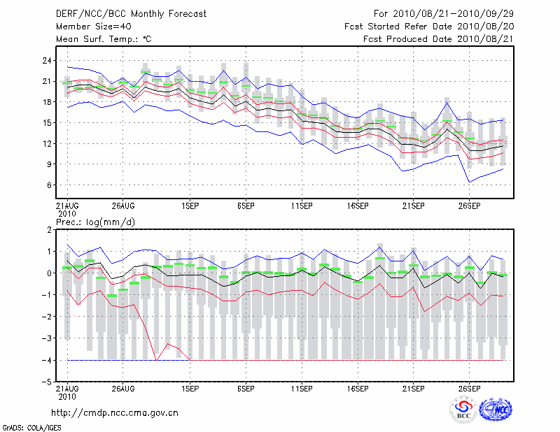 牡 丹 江 (LAT:44.57 LON:129.60) 2010-08-21        预测