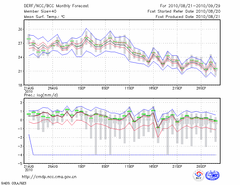 东 台 (LAT:32.87 LON:120.32) 2010-08-21        预测