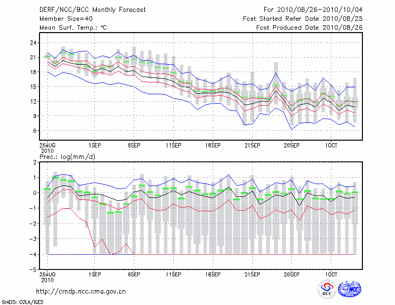 牡 丹 江 (LAT:44.57 LON:129.60) 2010-08-26        预测