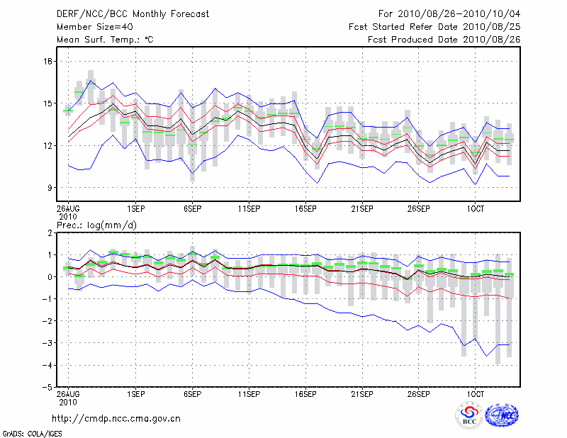 甘 孜 (LAT:31.62 LON:100.00) 2010-08-26        预测