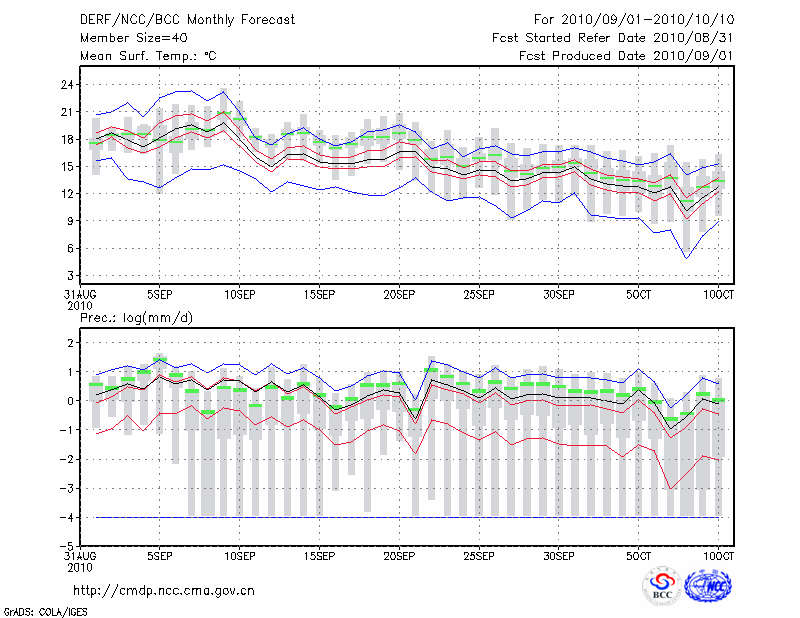 西 峰 镇 (LAT:35.73 LON:107.63) 2010-09-01        预测