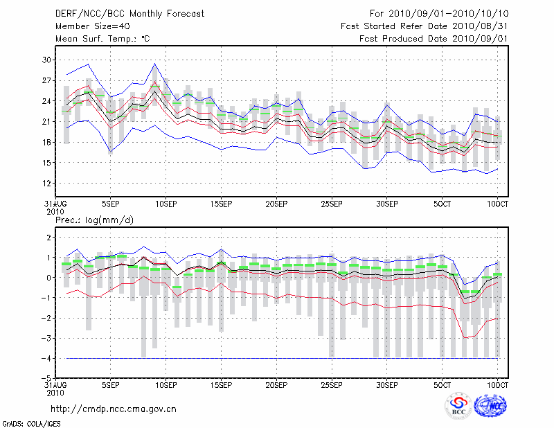 西 安 (LAT:34.30 LON:108.93) 2010-09-01        预测
