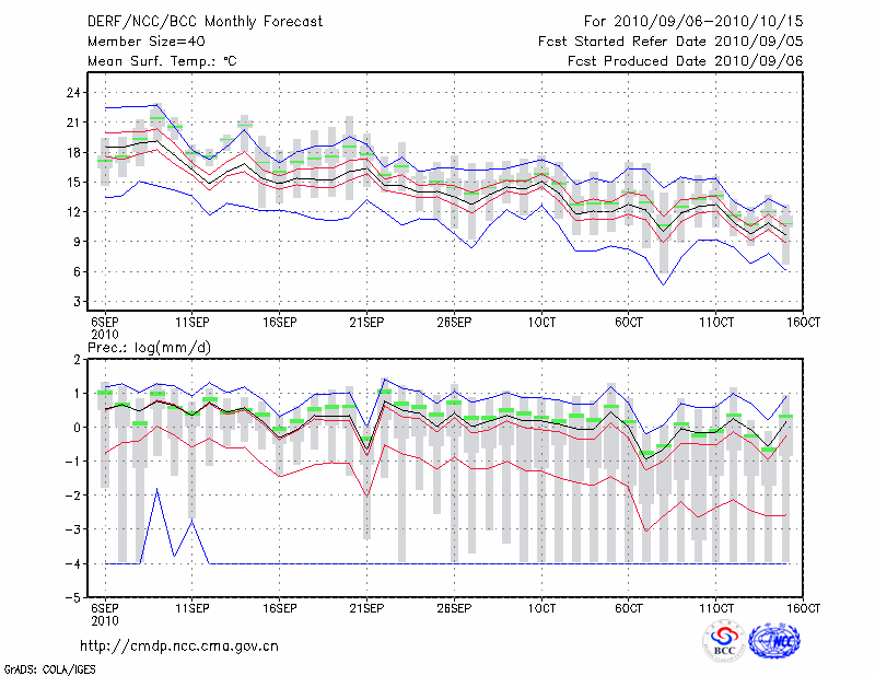 西 峰 镇 (LAT:35.73 LON:107.63) 2010-09-06        预测