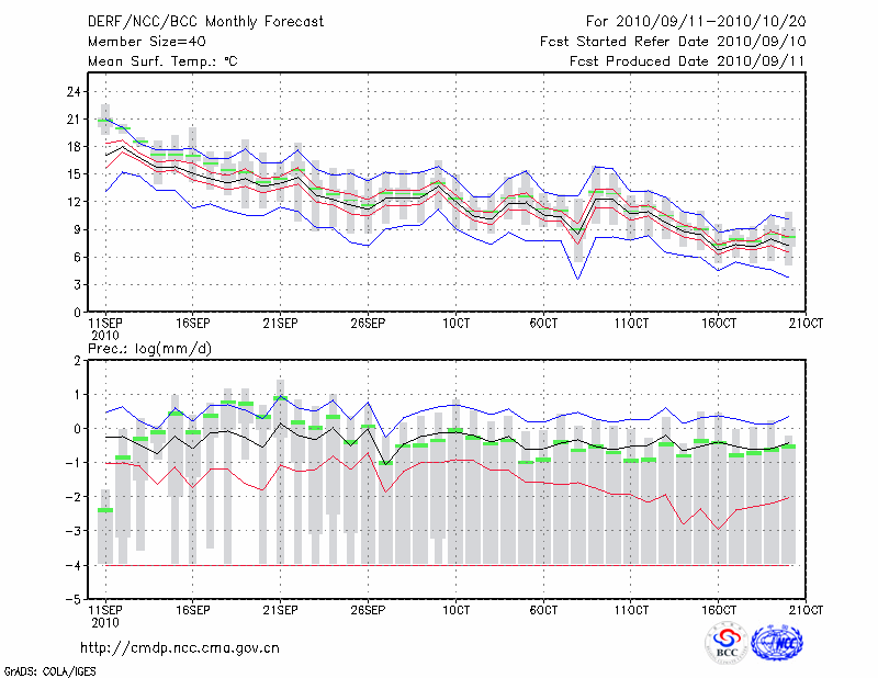 呼和浩特 (LAT:40.82 LON:111.68) 2010-09-11        预测