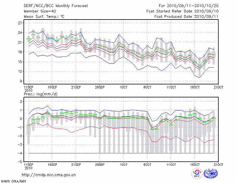 西 安 (LAT:34.30 LON:108.93) 2010-09-11        预测