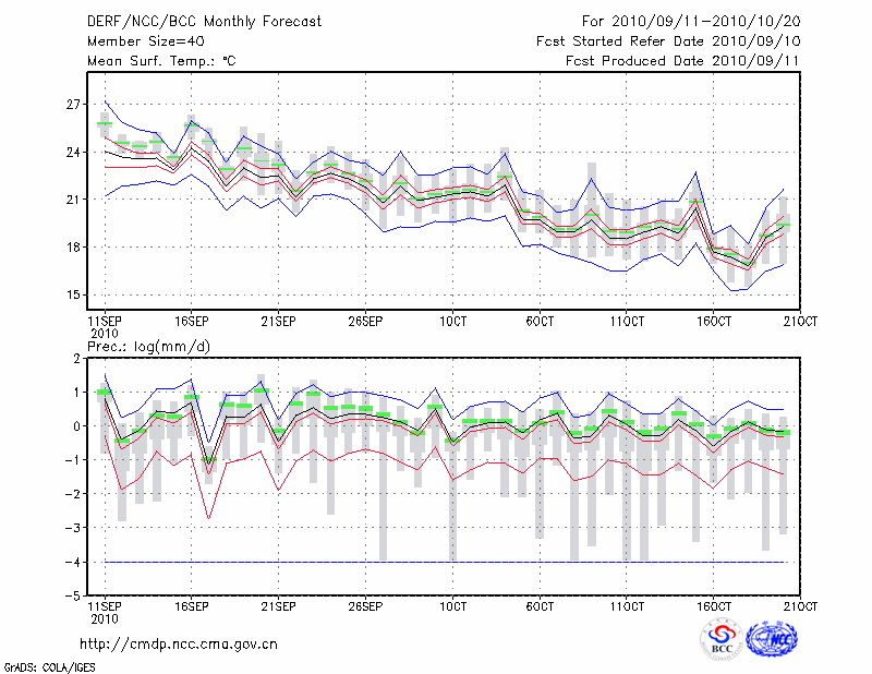 东 台 (LAT:32.87 LON:120.32) 2010-09-11        预测