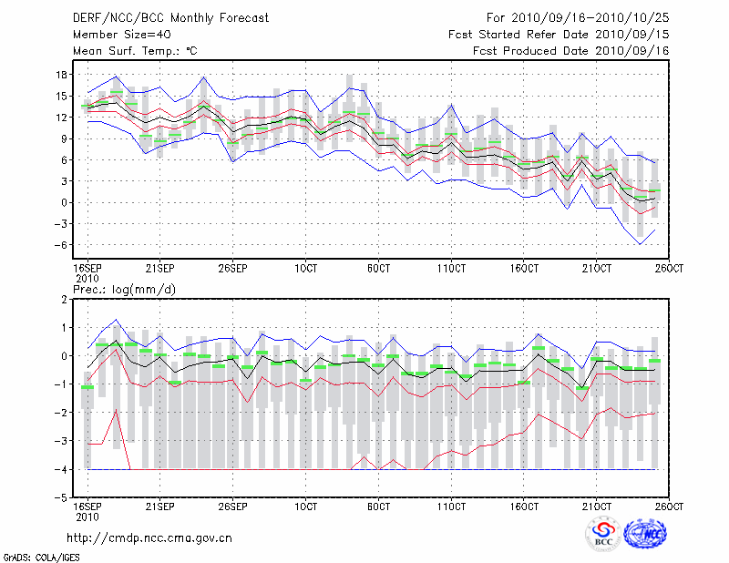 牡 丹 江 (LAT:44.57 LON:129.60) 2010-09-16        预测