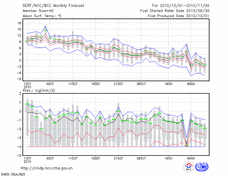 乌兰浩特 (LAT:46.08 LON:122.05) 2010-10-01        预测
