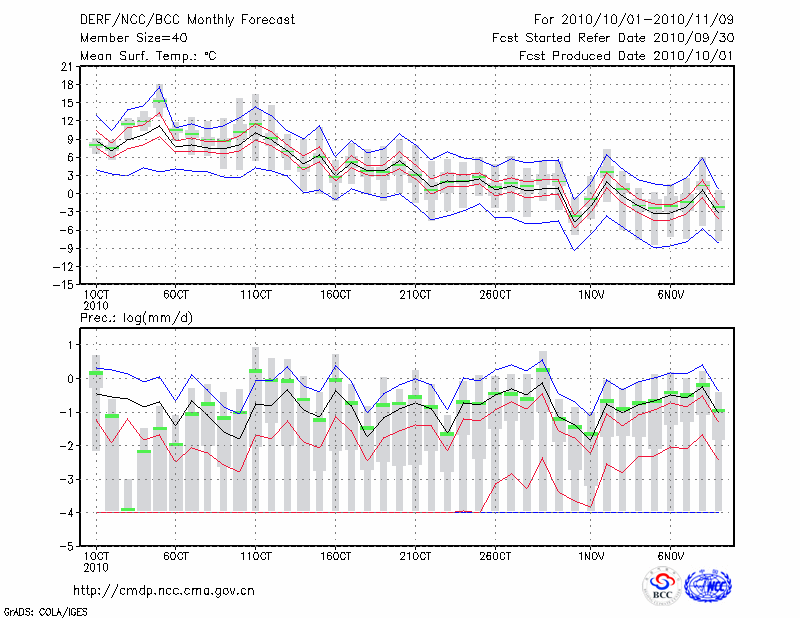 锡林浩特 (LAT:43.95 LON:116.07) 2010-10-01        预测