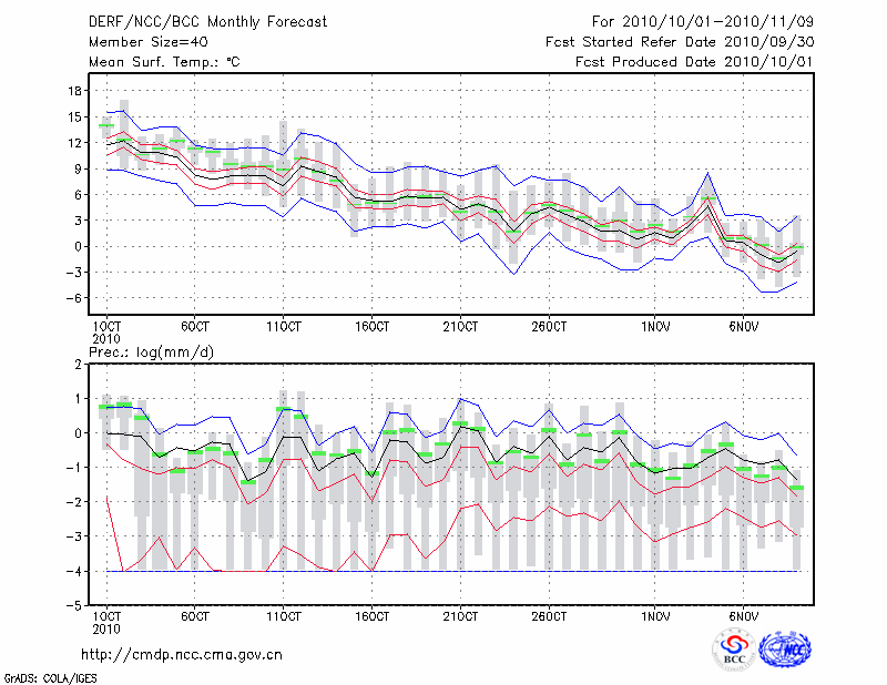 延 吉 (LAT:42.88 LON:129.47) 2010-10-01        预测